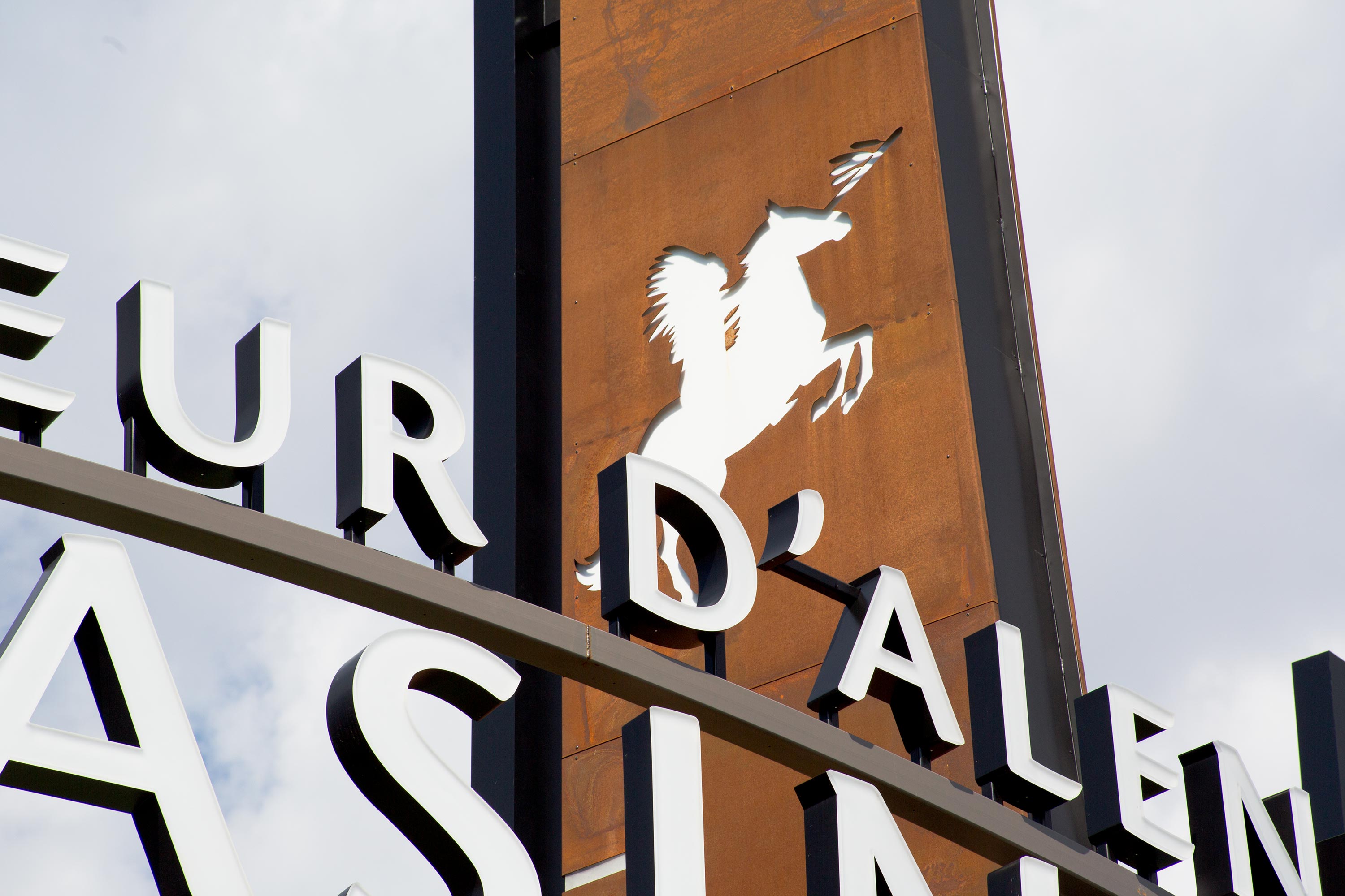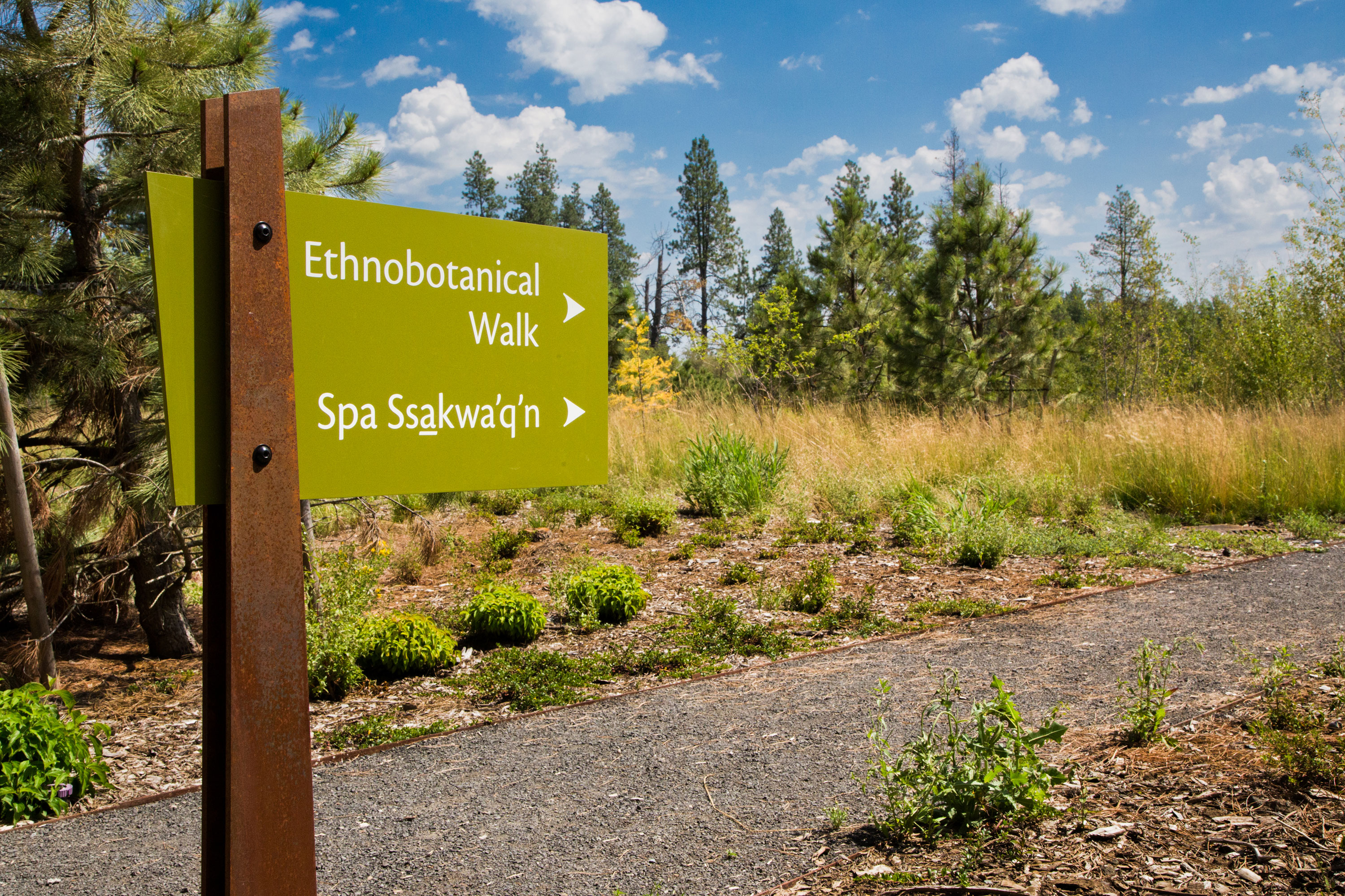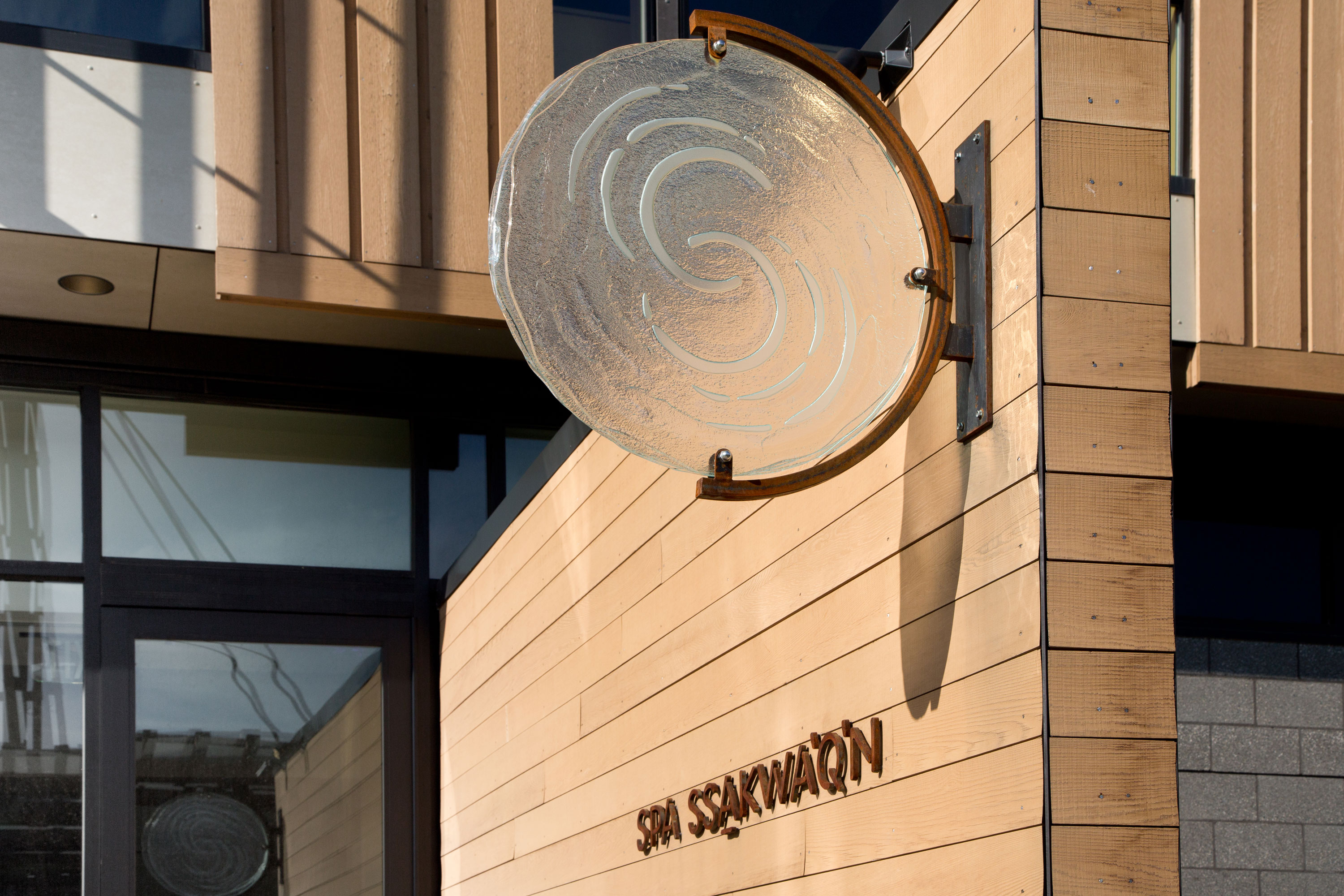 The team led the development of a comprehensive signage program inside and out including many tribal expressions throughout the property. Working closely with tribal members, the architects, and Creo Industrial Arts, the sign fabricator, the environmental graphics feature a wide variety of sign types and expressions ranging from interpretive markers for the ethno-botanical walk, resort entry monuments integrated into the landscape, spa and venue identities, and site-wide wayfinding. Unique tribal expressions include a specialty backlit glass wall mural in the welcome lobby with custom photography of tribal dancers and framed artworks in the hotel rooms featuring traditional Coeur d’Alene beading.