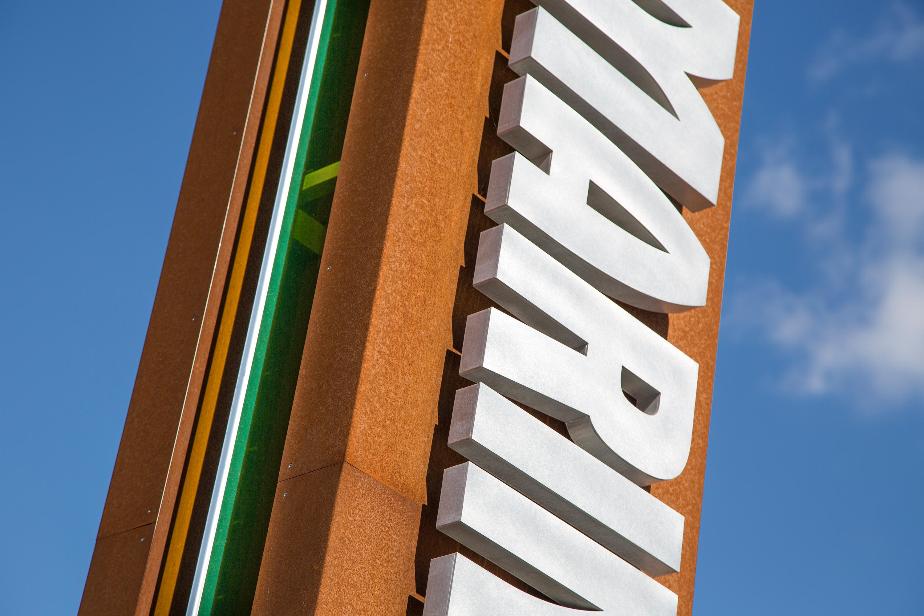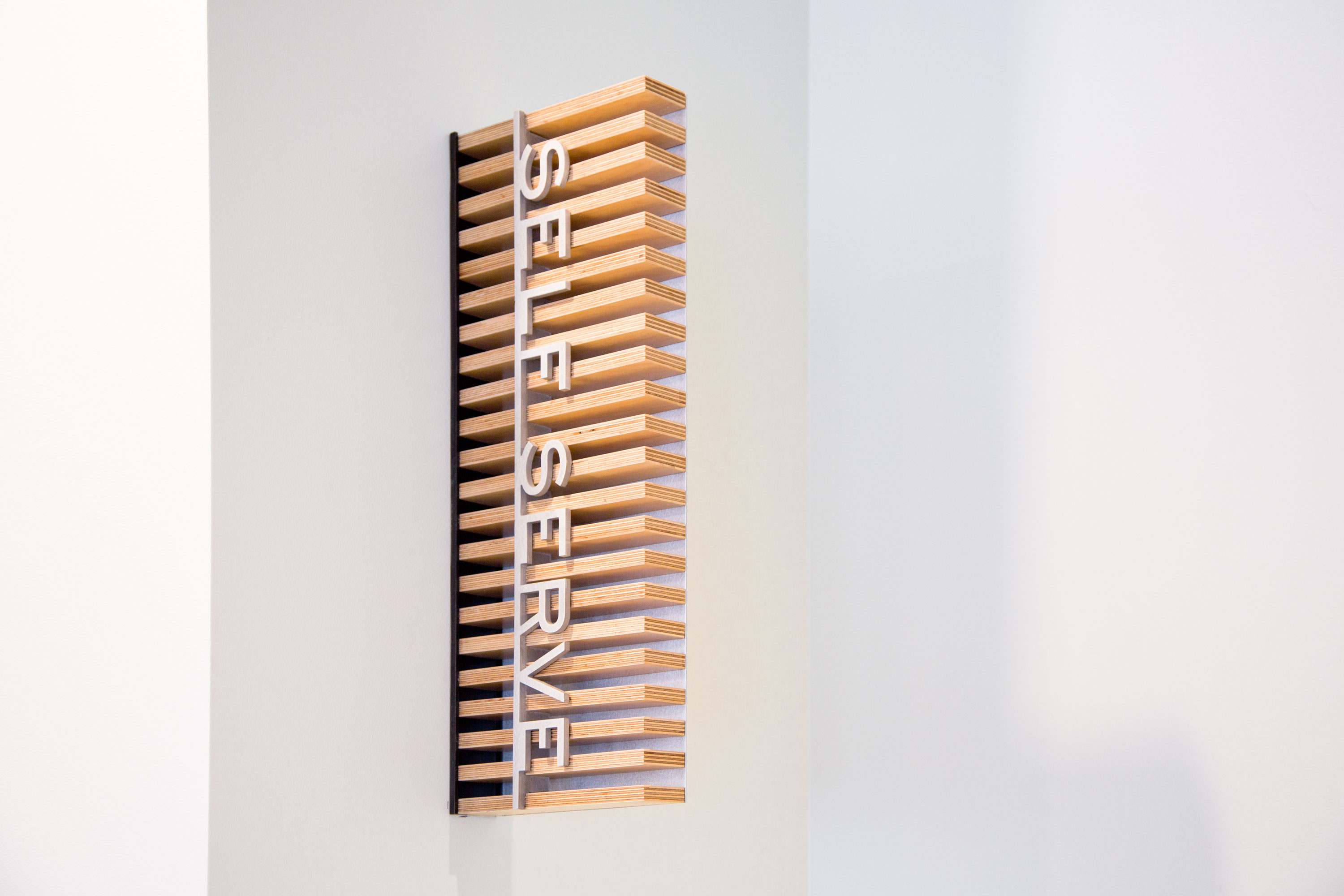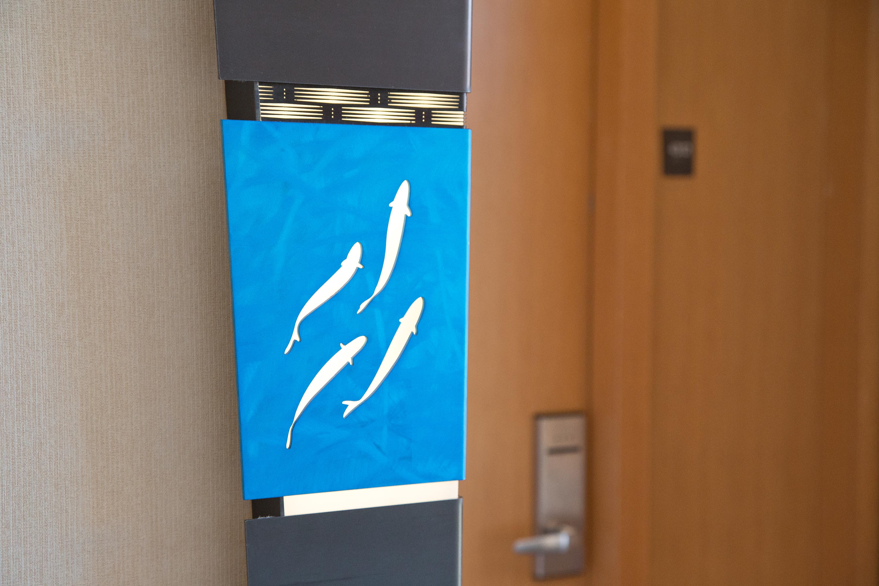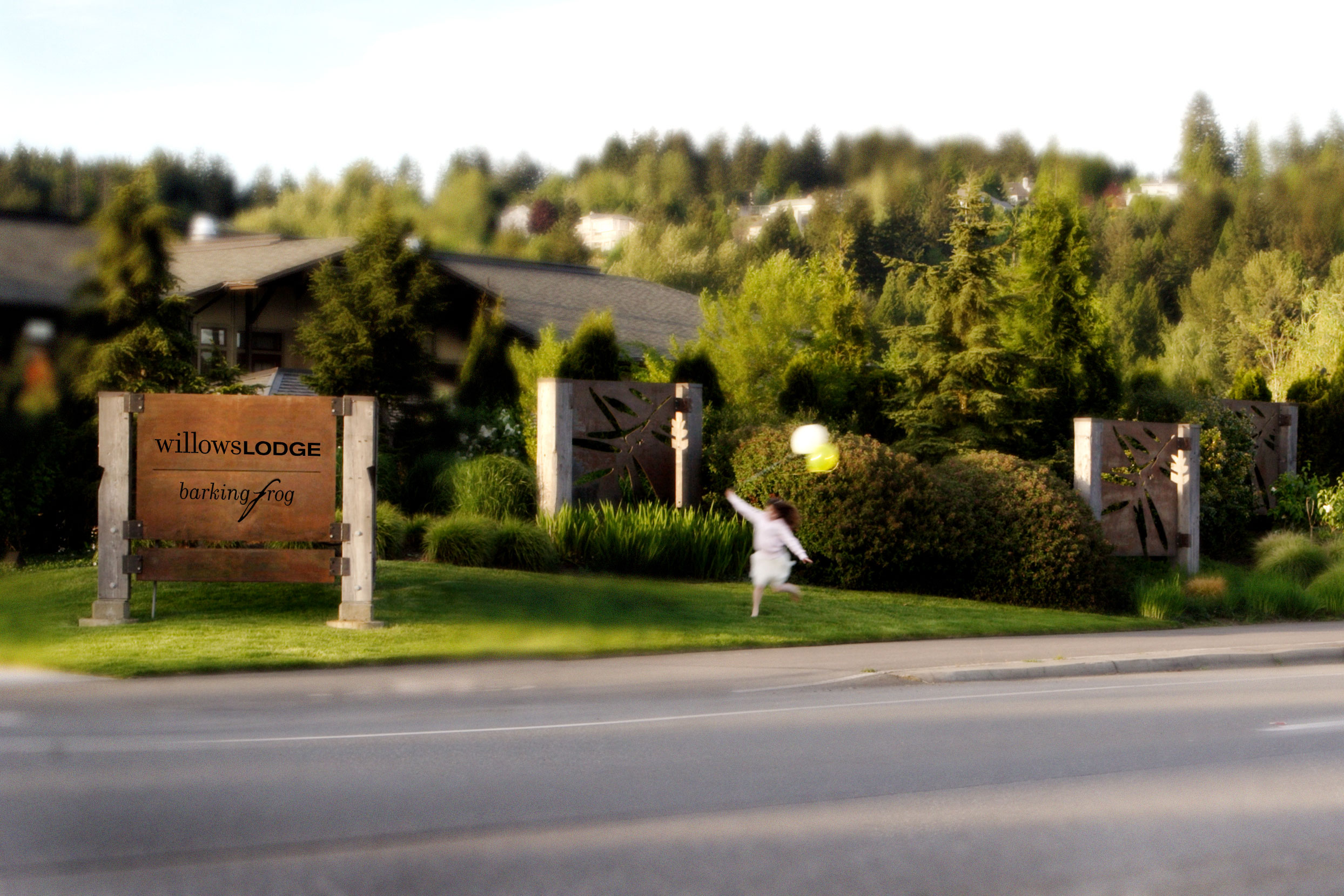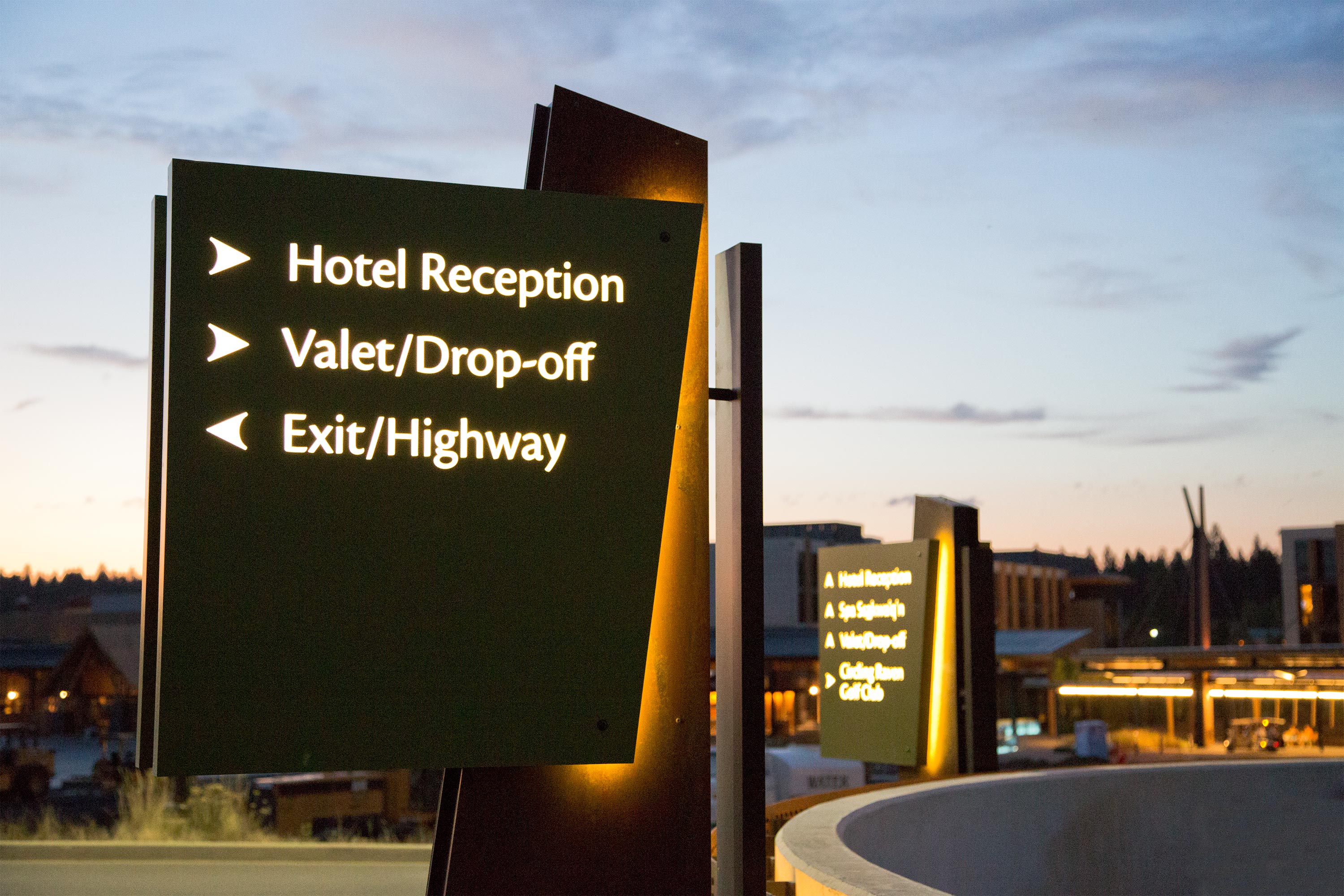 The signage and environmental graphics were thoughtfully integrated with exterior and interior architectural features that ranged from the fence design at the front of the property to shower screens in the rooms and metal railings in the lobby, all tied together by a cohesive wayfinding system sensitive to the Northwest character of the lodge. The on-site restaurant ‘Barking Frog’ expresses the essence of the lodge experience through its connection to the environment and the commitment to locally sourced foods.