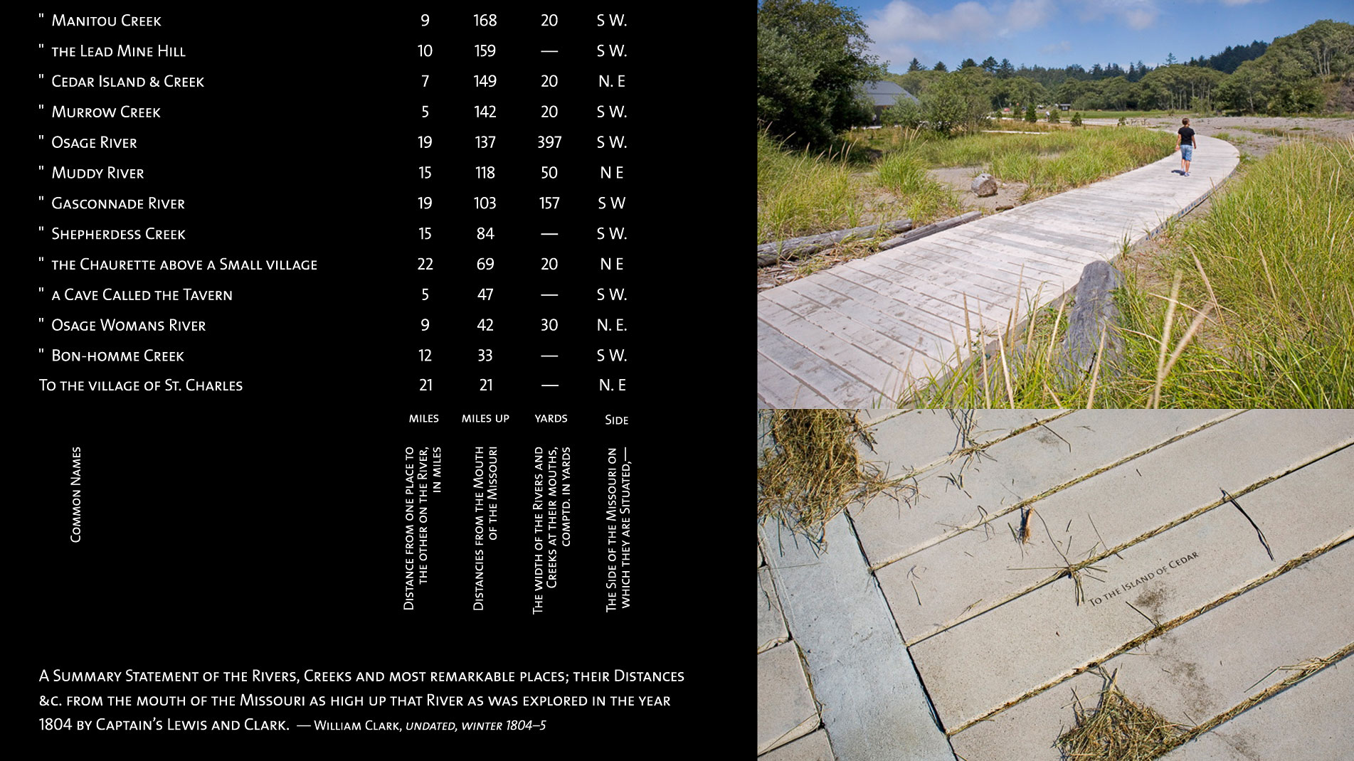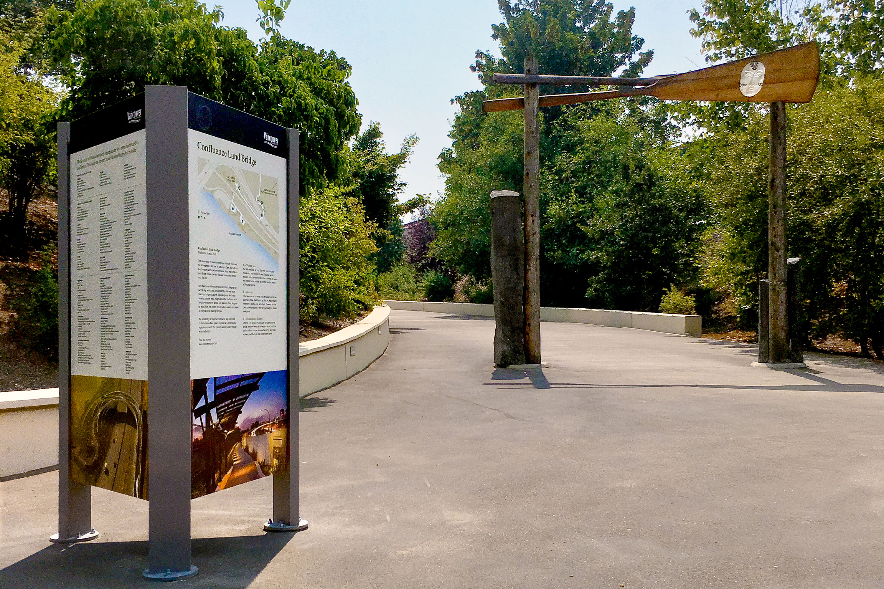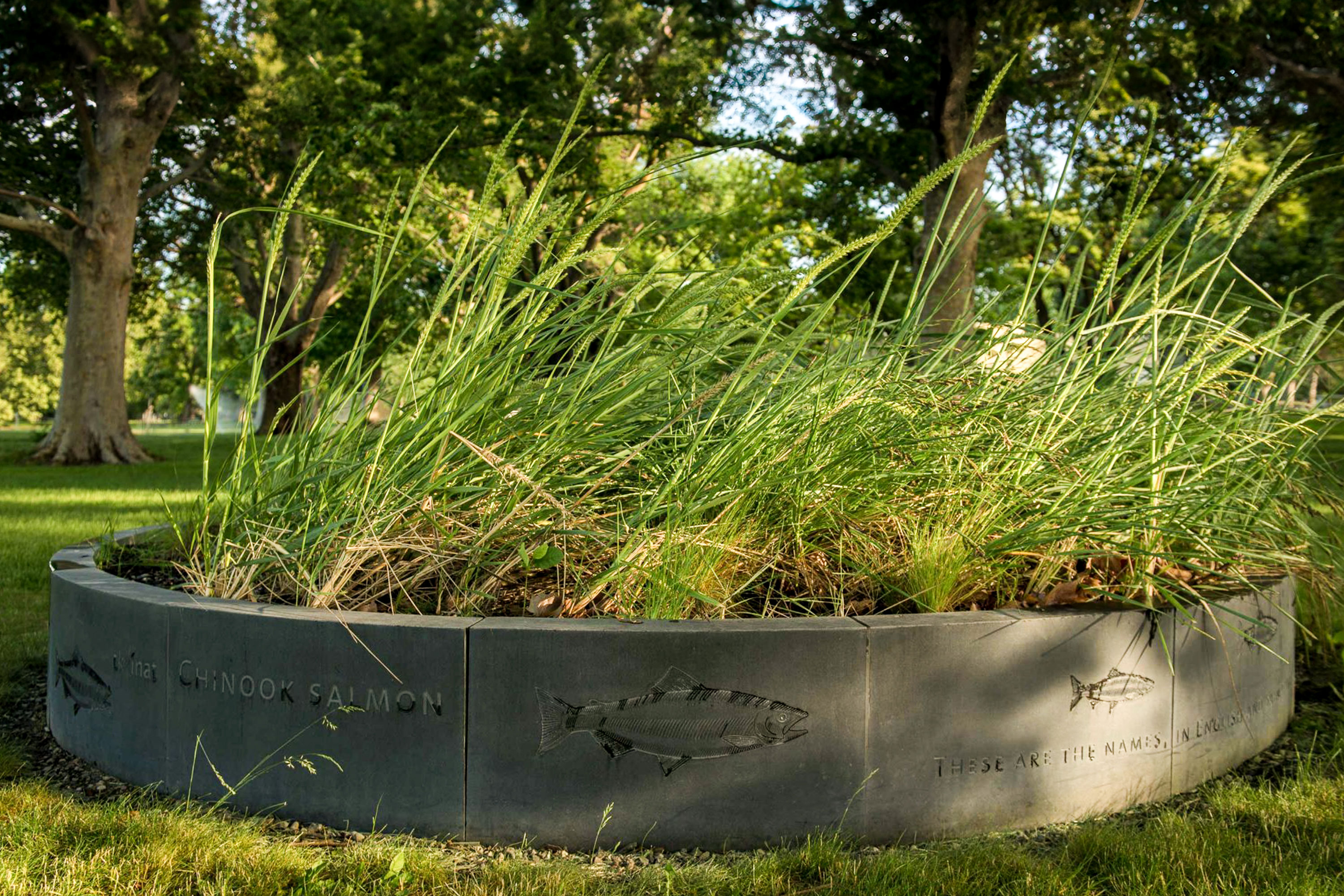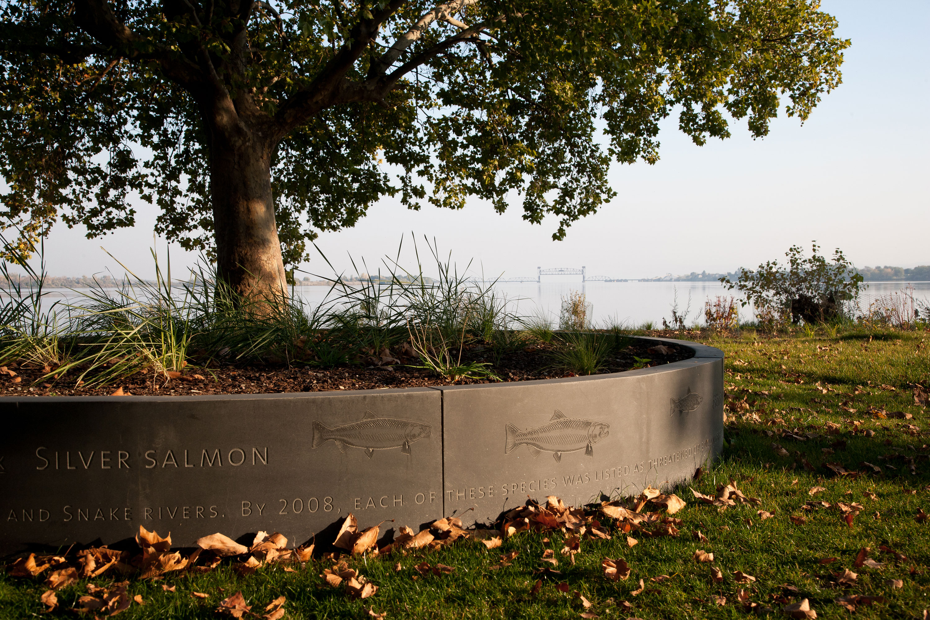 Confluence is an initiative to reclaim, transform and reimagine places along the historic Columbia River Basin through art landscapes, educational programs, and public gatherings in collaboration with Northwest tribes and communities. Each site along the 450-mile course of the project is a place where waterways merge or indigenous peoples have gathered, and each was a scene of meeting between Native Americans and the Lewis and Clark Expedition. The River Sites, designed by Maya Lin, express the history, living cultures, and ecology of the river through indigenous voices and expedition narratives in the form of art landscapes. Each site features texts integral to the indigenous way of life and the historical and ecological changes that have shaped each site. The texts are etched and engraved into a wide variety of materials ranging from locally sourced basalt and black locust to recycled concrete and metal. The art landscapes complement many community-supported activities and gatherings throughout the Columbia River Basin.