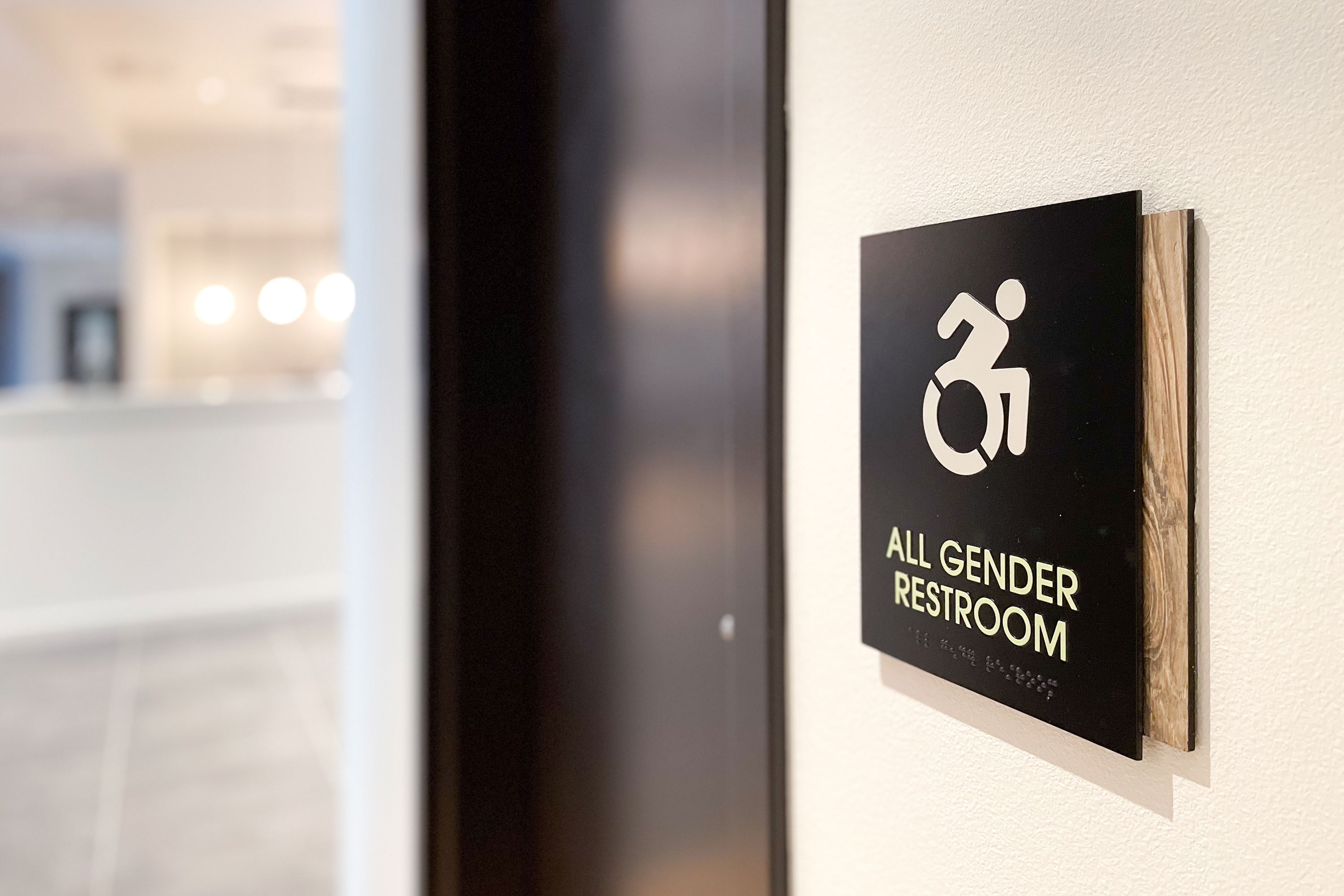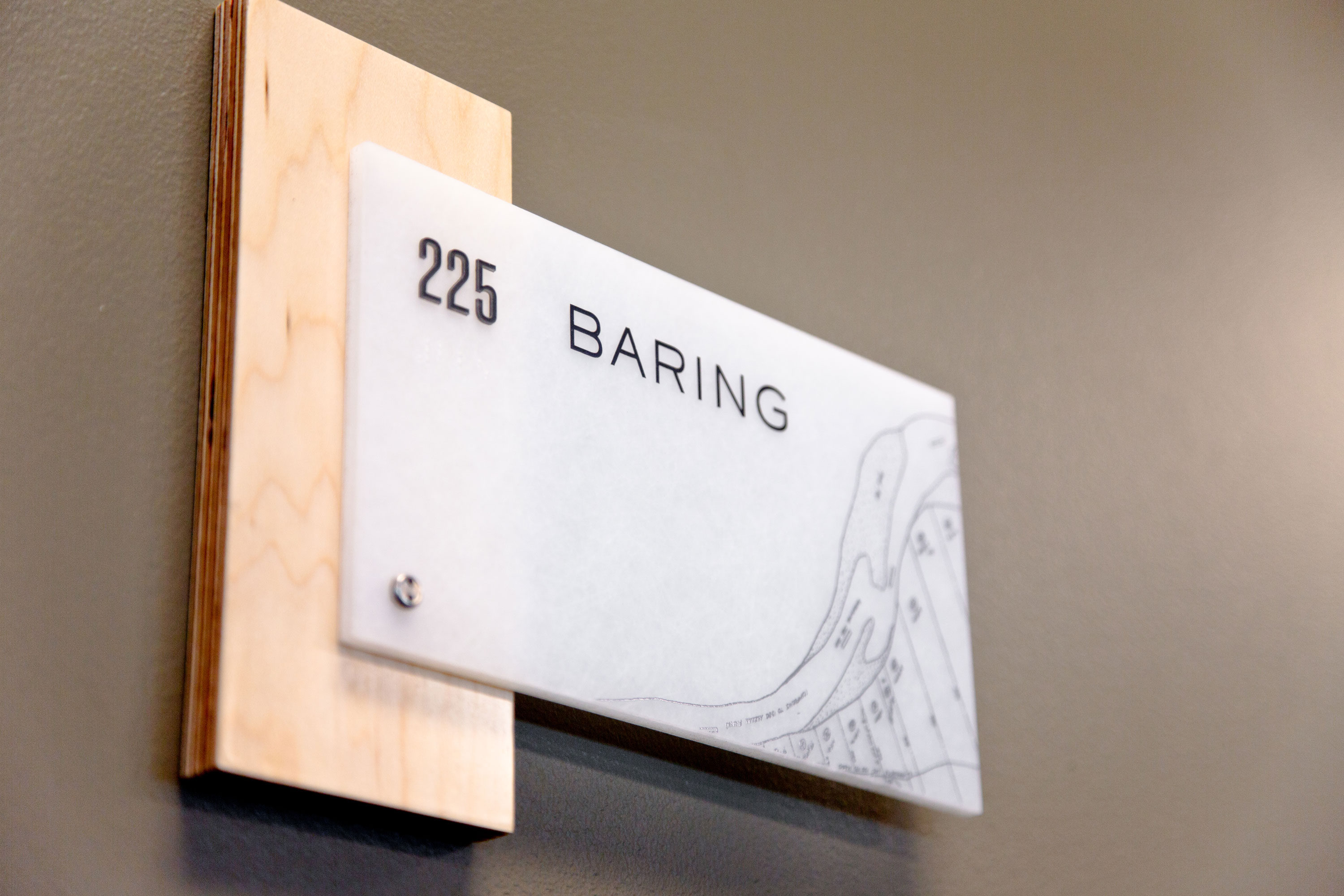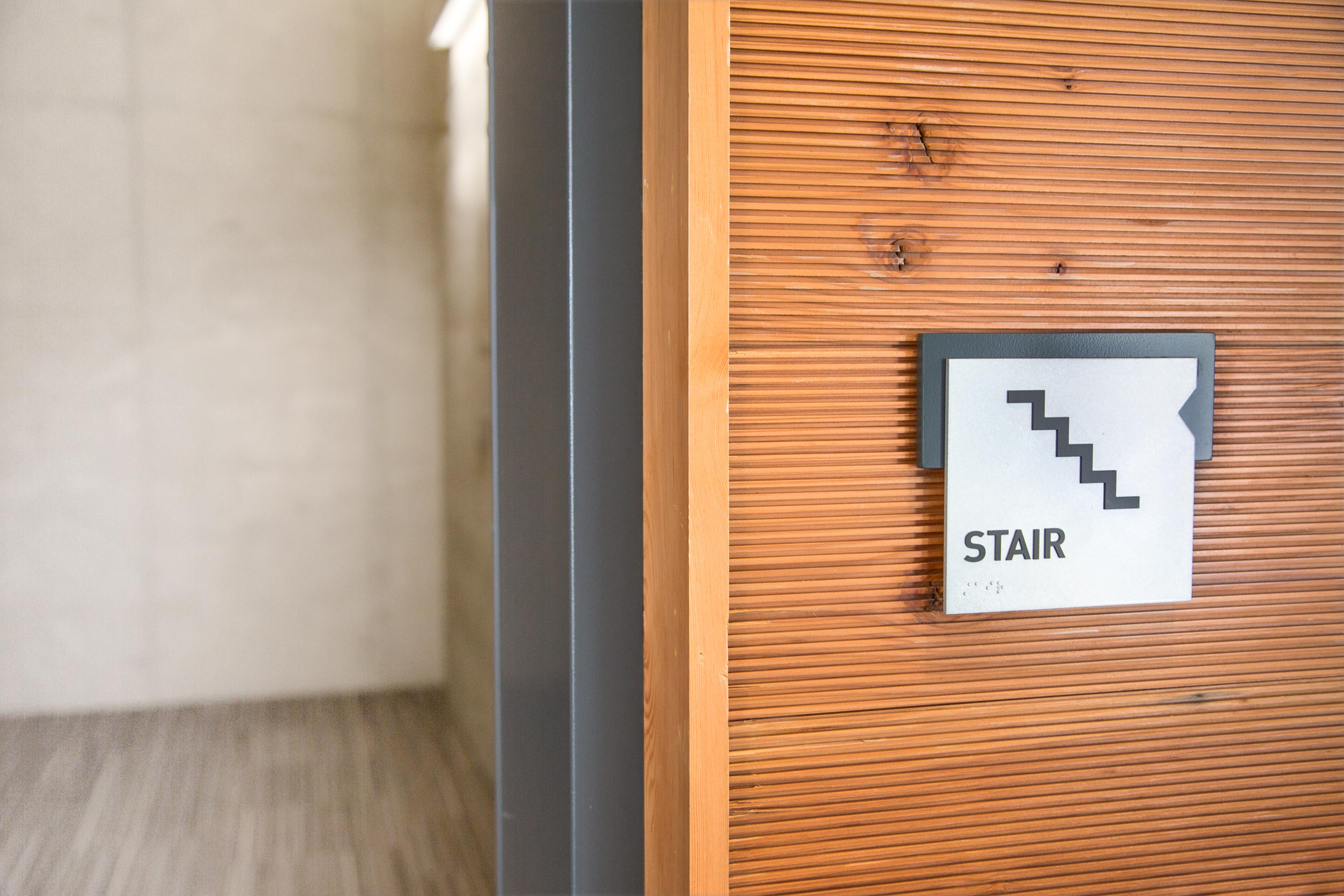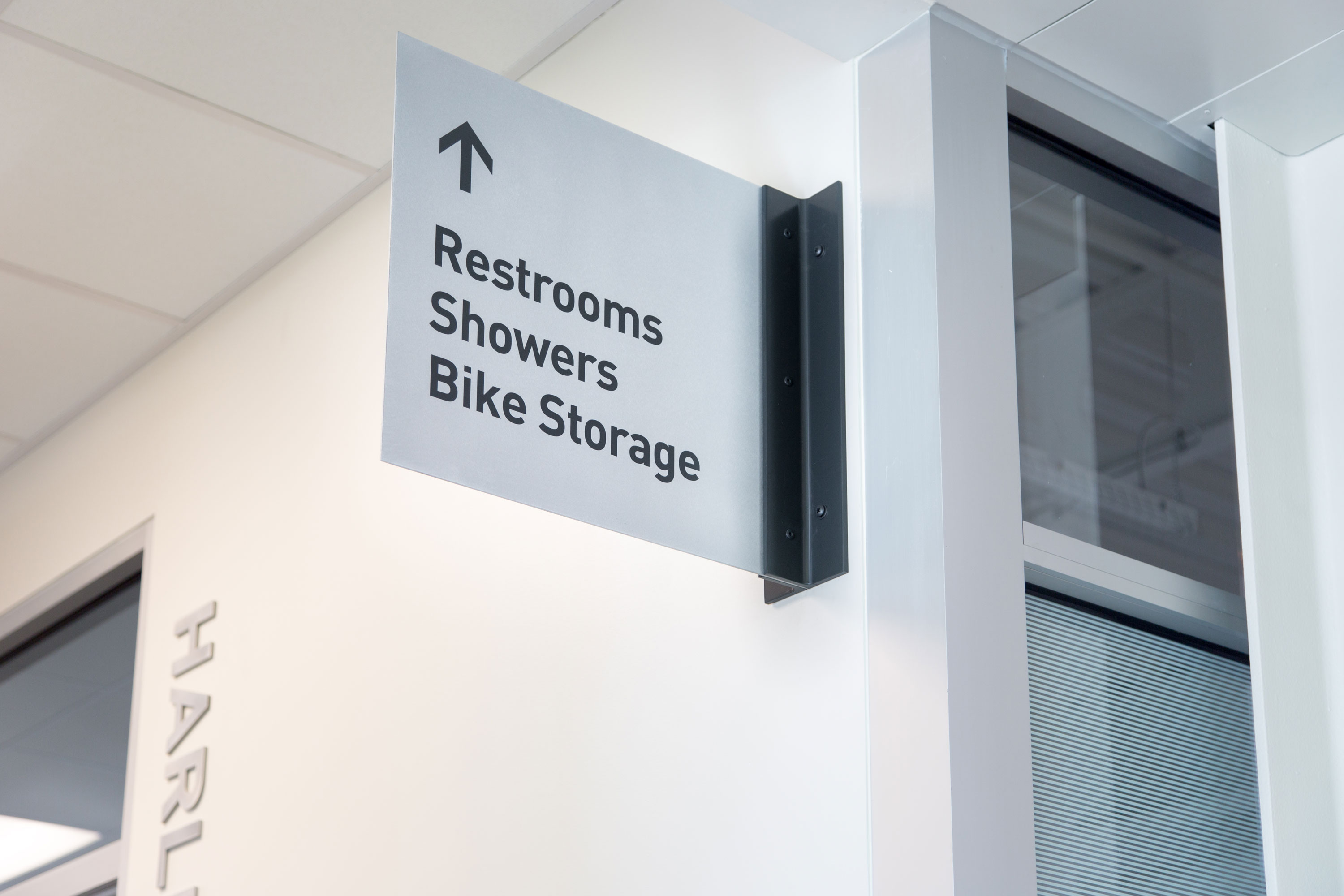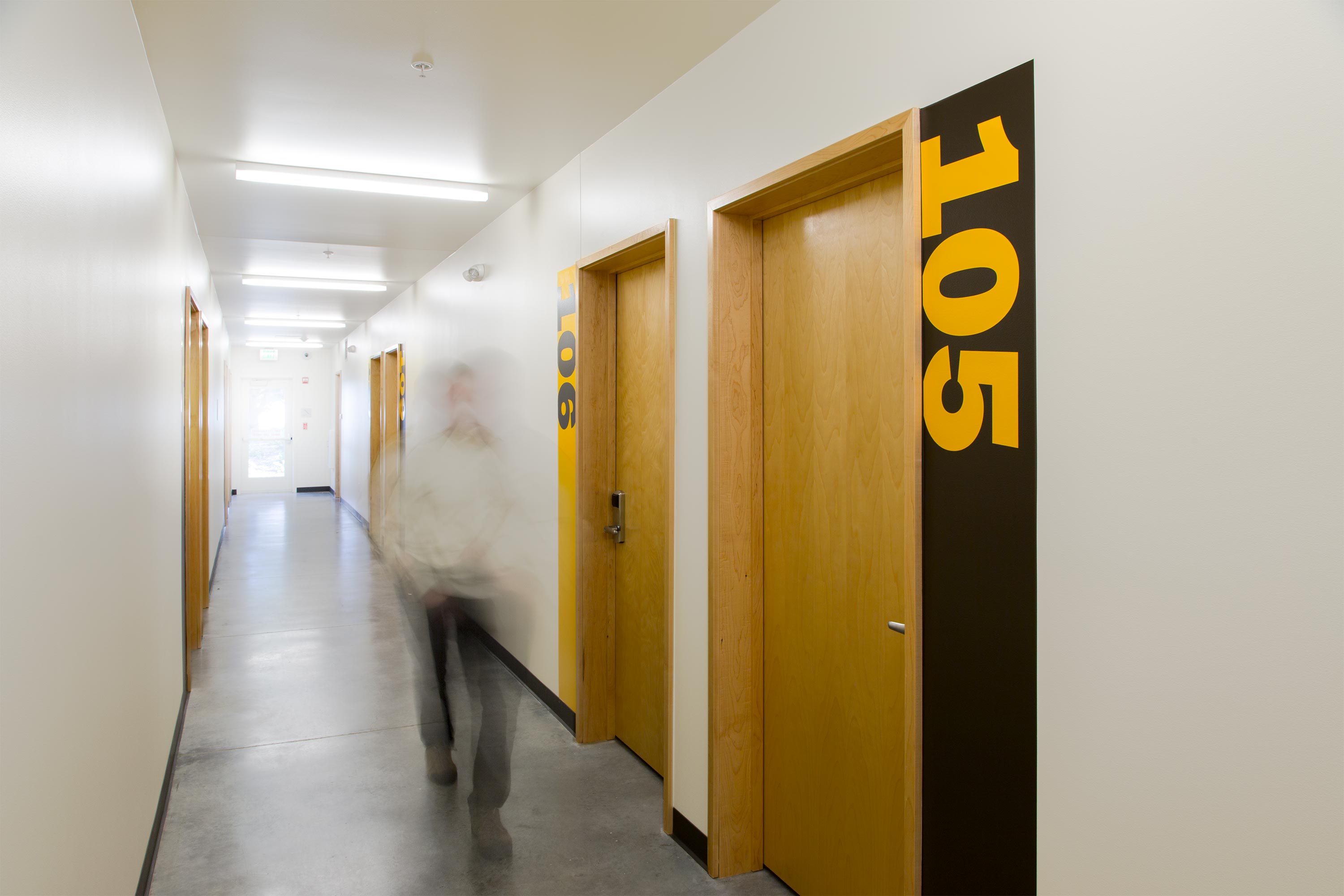 Two seven story residential blocks, with plentiful common areas and green spaces, evoke the building identity which draws inspiration from the active lifestyle along the Trail. Wayfinding signage is integrated into the surrounding landscape at the Arrival Court and Trailside Commons, complemented by naturalistic wayfinding and room signage on the interior that invites the outdoors in. The plethora of common areas have a variety of sign types, from the welcome lobby and the clubhouse to the commons and dog run. Altogether, the outdoorsy palette coupled with the sleek urban city vibe proves student living does not need to be garish or unrefined.