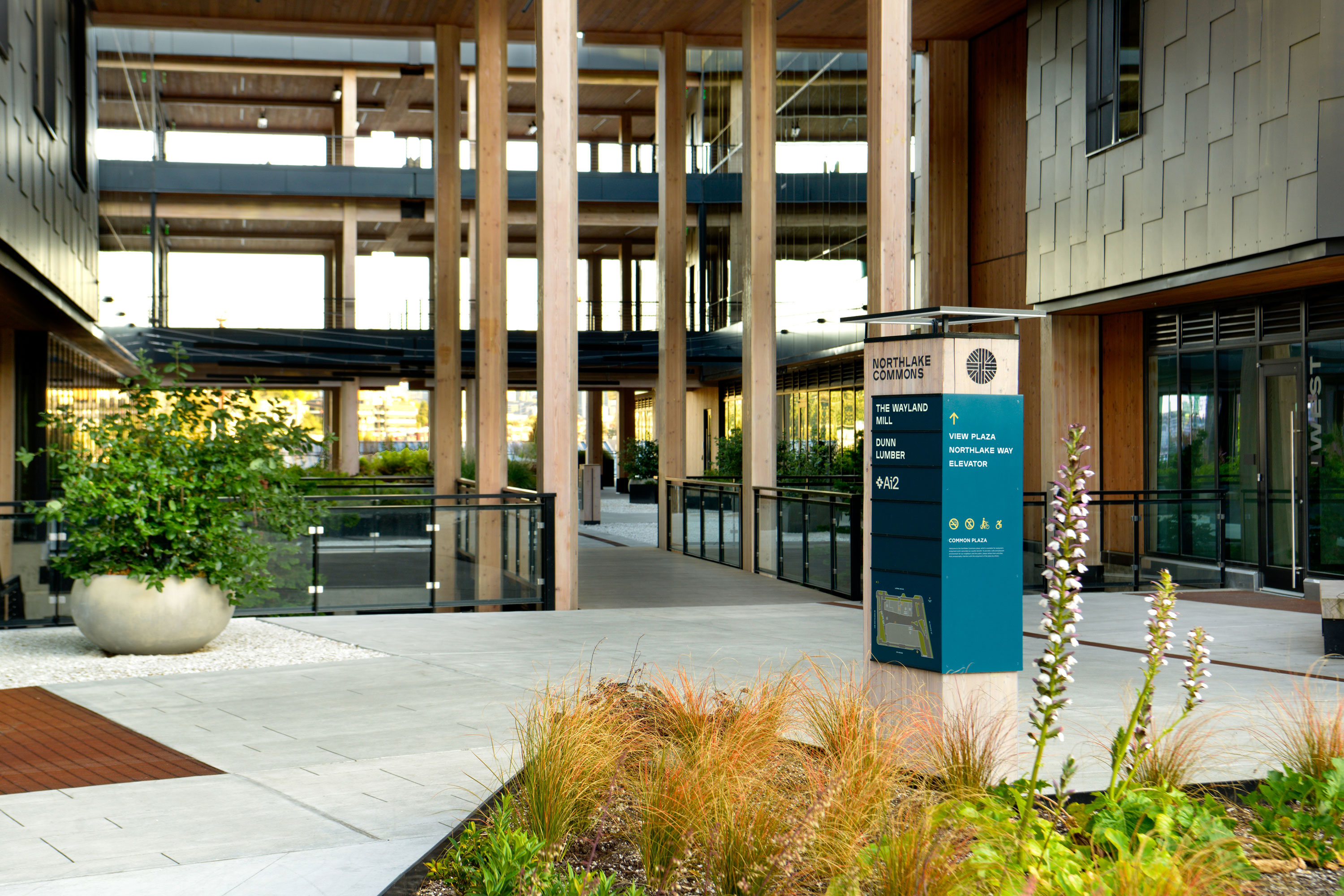 Situated on Dunn Lumber’s original lumber yard, Northlake Commons pays homage to the site’s history while looking to the future of workplace environments and the neighborhood. The North Lake Union neighborhood is taking shape—a place where Seattle’s industrial heritage and academic center meet modern-day vision and values. Paying homage to the Dunn family’s historic connection to the site, this new multi-use commercial building incorporates heavy timber both indoors and out, opening with unique purpose onto the Burke-Gilman trail and the water beyond. The innovative landmark elevates the human experience in the workplace, curating an ecosystem that brings professional and personal engagement together into a built environment.