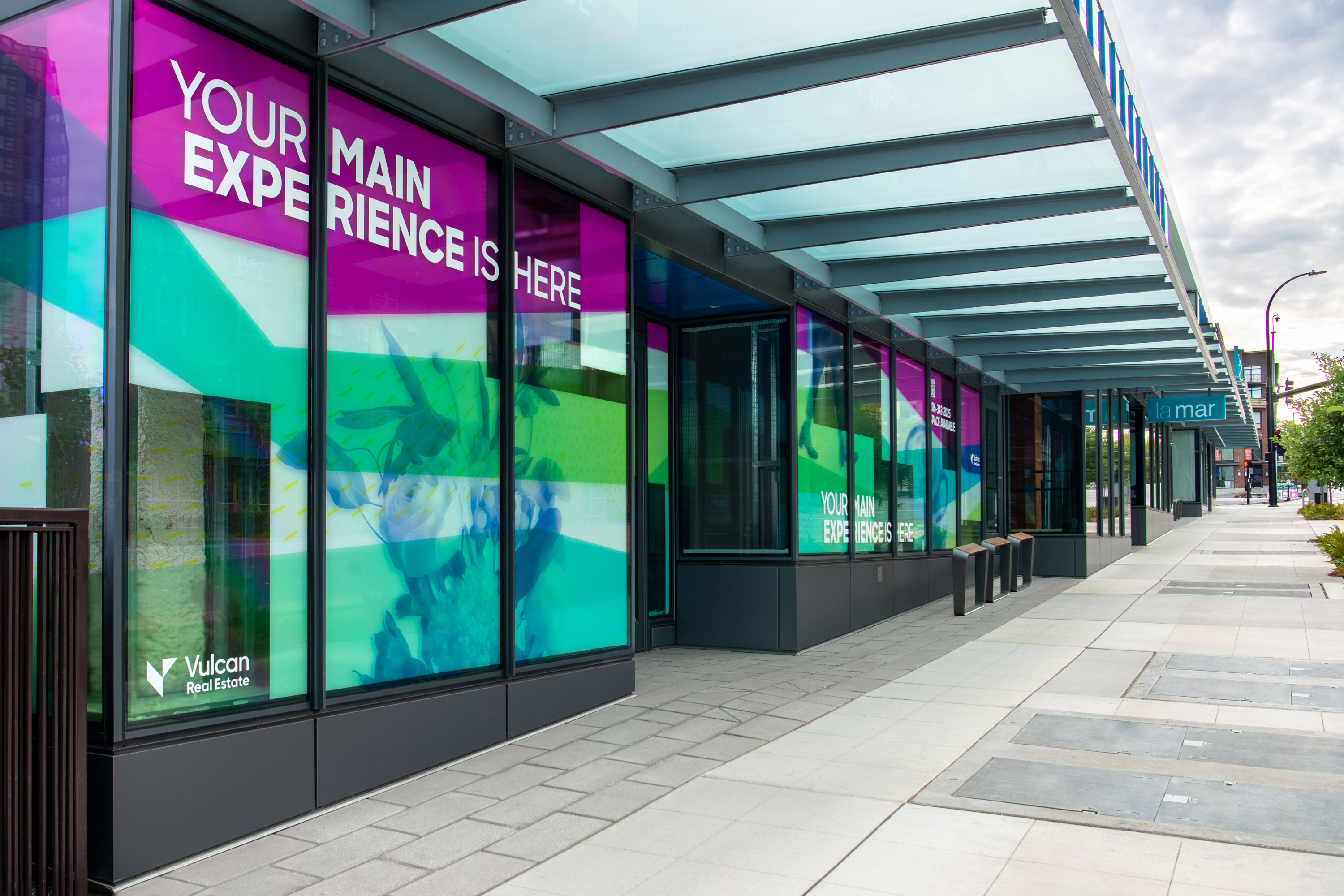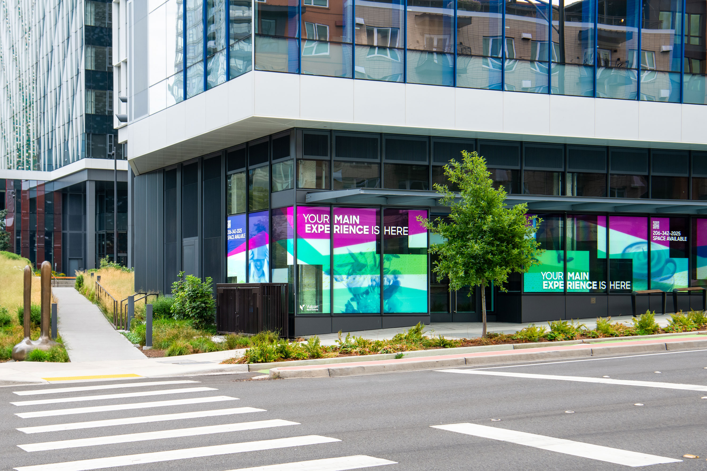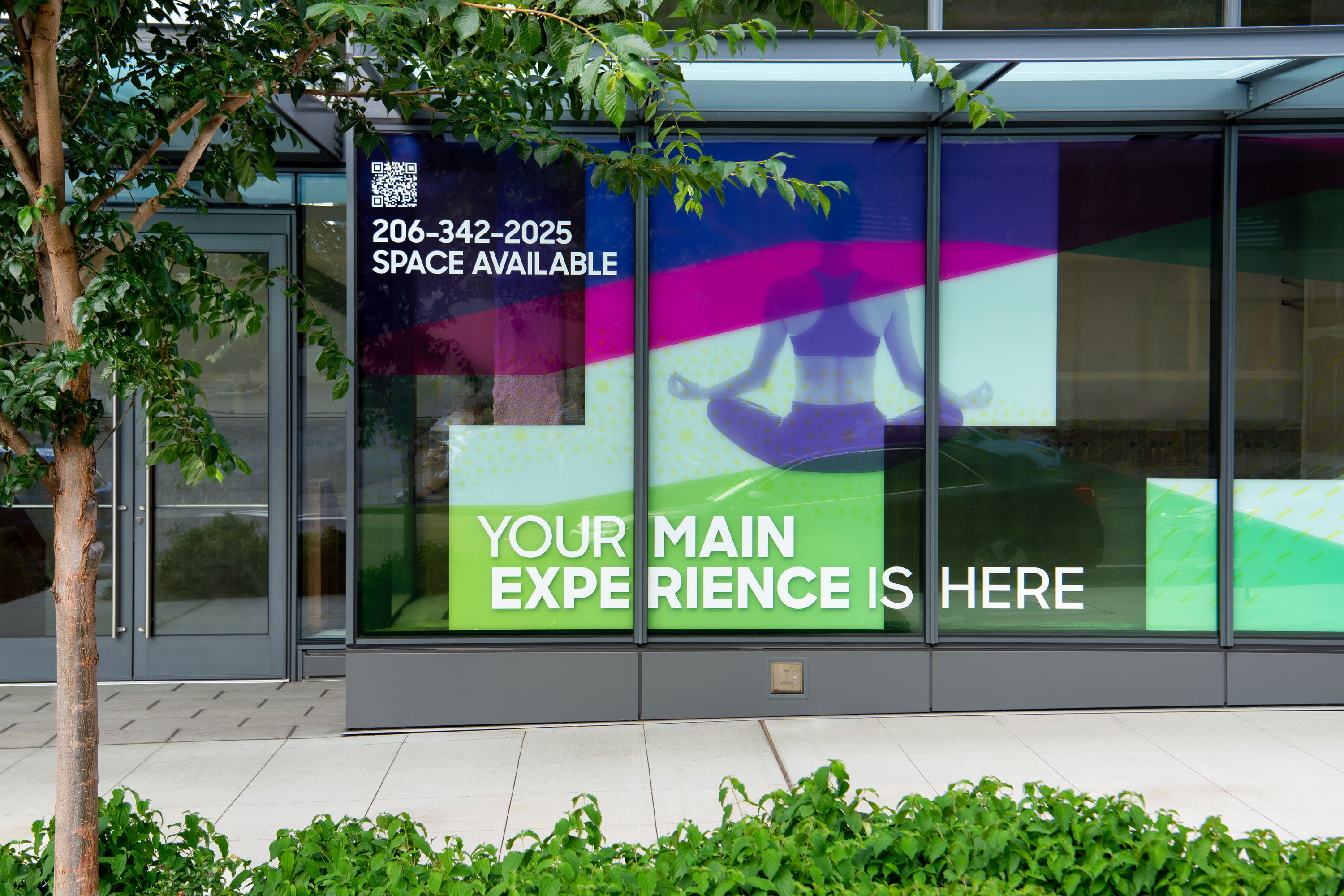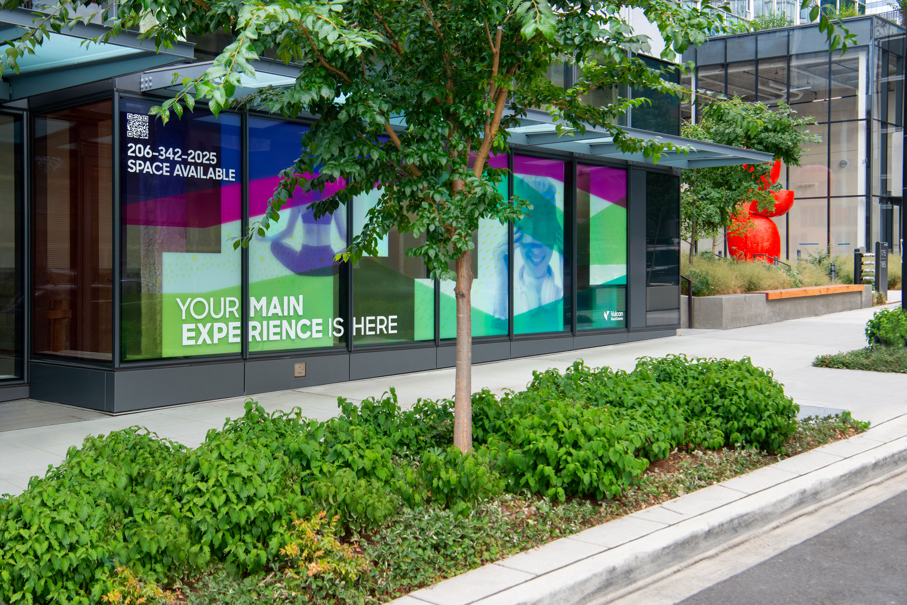 Vulcan Real Estate needed a creative design solution to promote available Retail Space at West Main, 550 Union and Batik. Rather than standard for lease signage, the intent was to develop an enticing window graphics system that is upscale, arty, creates an attractive presence, and suits each neighborhood with unique imagery.